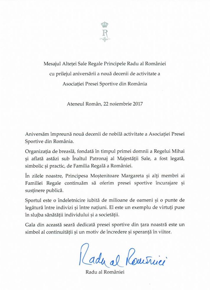 Mesajul principelui Radu al României